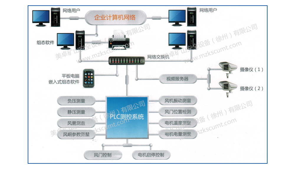 數據采集設備:現場安裝各種數據采集傳感器,負責對主扇、局扇風機的實時數據采集,傳送到PLC監(jiān)測站。